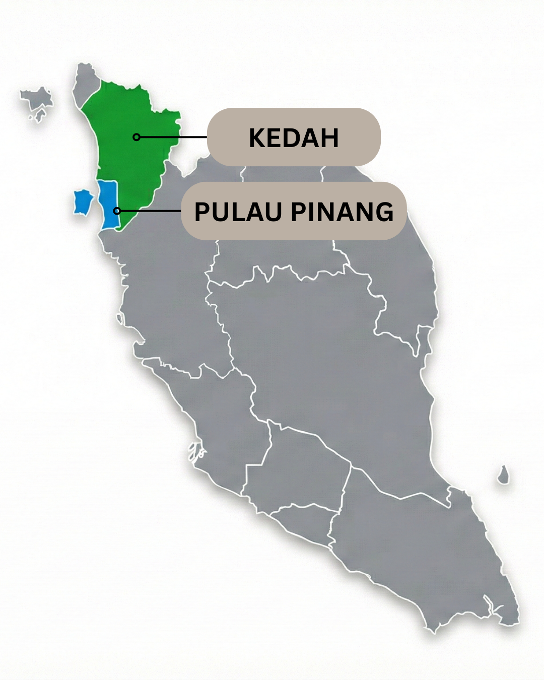 Lokasi kami banyak bertumpu dalam Negeri Kedah dan Negeri Pulau Pinang.